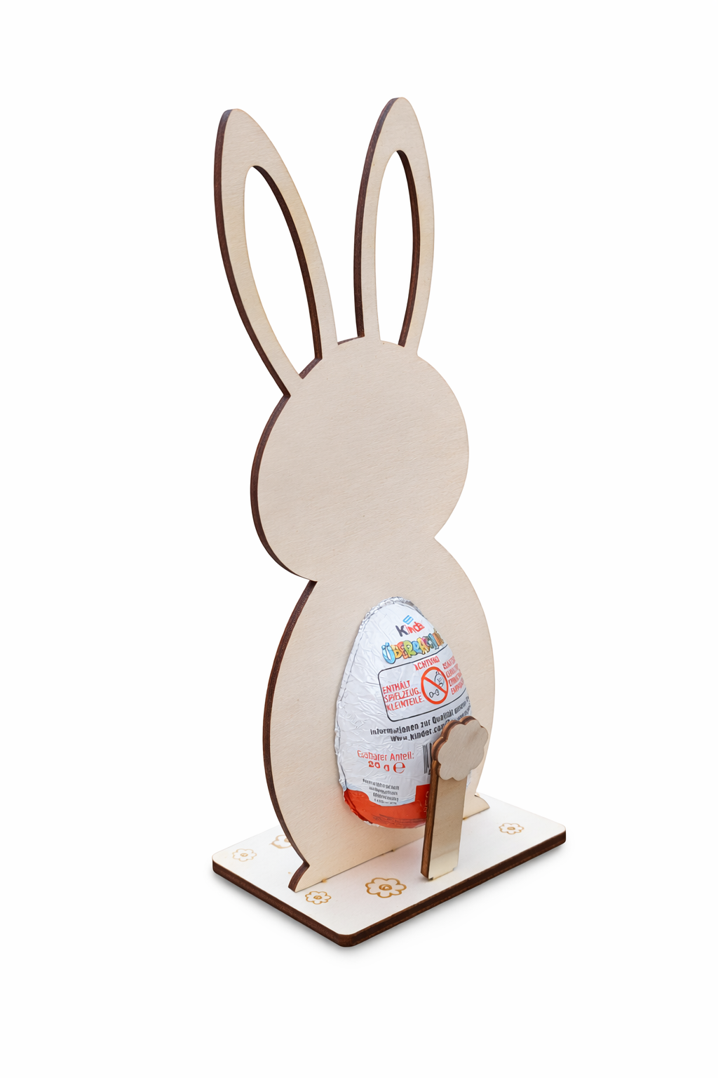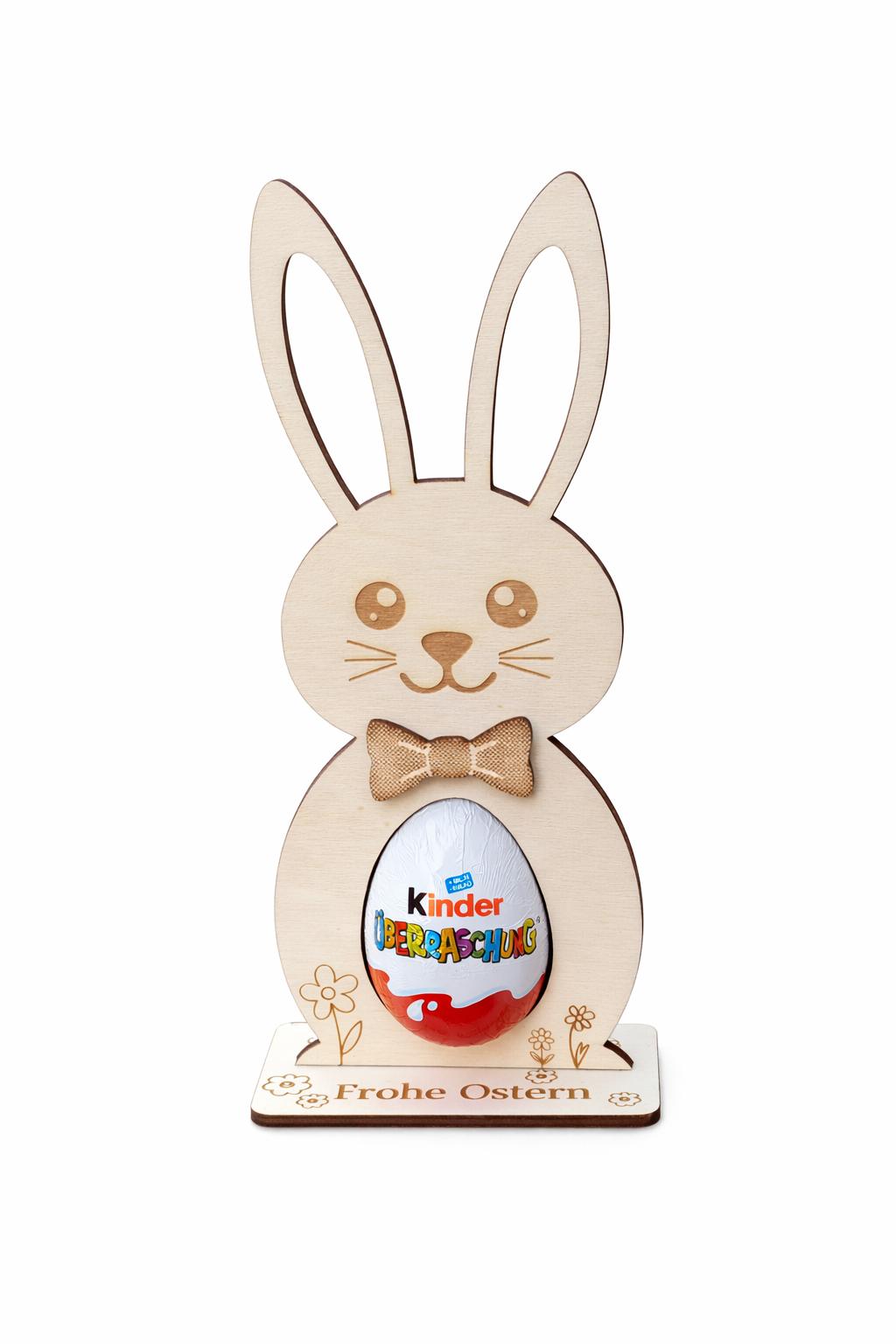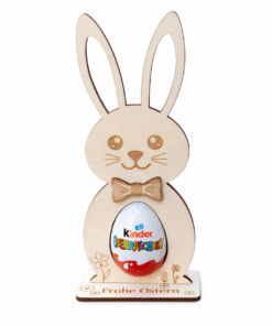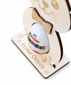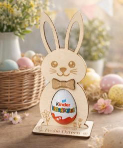 Dieser liebevoll gestaltete Osterhase aus Holz mit Überraschungsei-Halter ist nicht nur eine wunderschöne Dekoration, sondern auch eine kreative Geschenkidee. Im Bauch des Hasen findet ein Überraschungsei Platz – perfekt, um kleinen und großen Osterfans eine Freude zu machen.